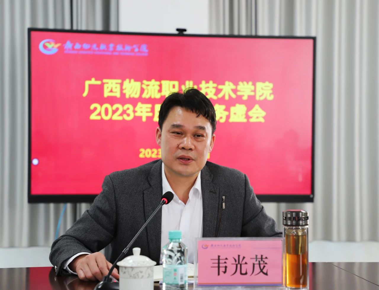 韦光茂指出,今年是全面贯彻落实党的二十大精神的开局之年,也是学院高质量发展承上启下的关键之年,做好各项工作意义重大。他强调,要做好学院2023年工作,一要提高政治站位,统一思想,凝心聚力,以党的二十大精神为统领,以“双高”建设为目标,全校上下一盘棋,切实把思想和行动统一到党委的各项决策部署上来。二要明确发展定位目标,提升发展内涵,以人才培养为中心,通过优化师资结构,提升办学质量,深化校企合作,加快中高职融合,齐心协力推动各项工作再上新台阶。三要不断提高工作的科学性、预见性、主动性和创造性,用发展的方法解决发展中的问题。